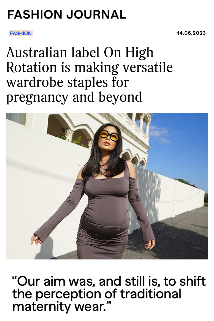 FASHION JOURNALRead our feature on Fashion Journal Magazine about shifting the traditional perception of maternity wear.